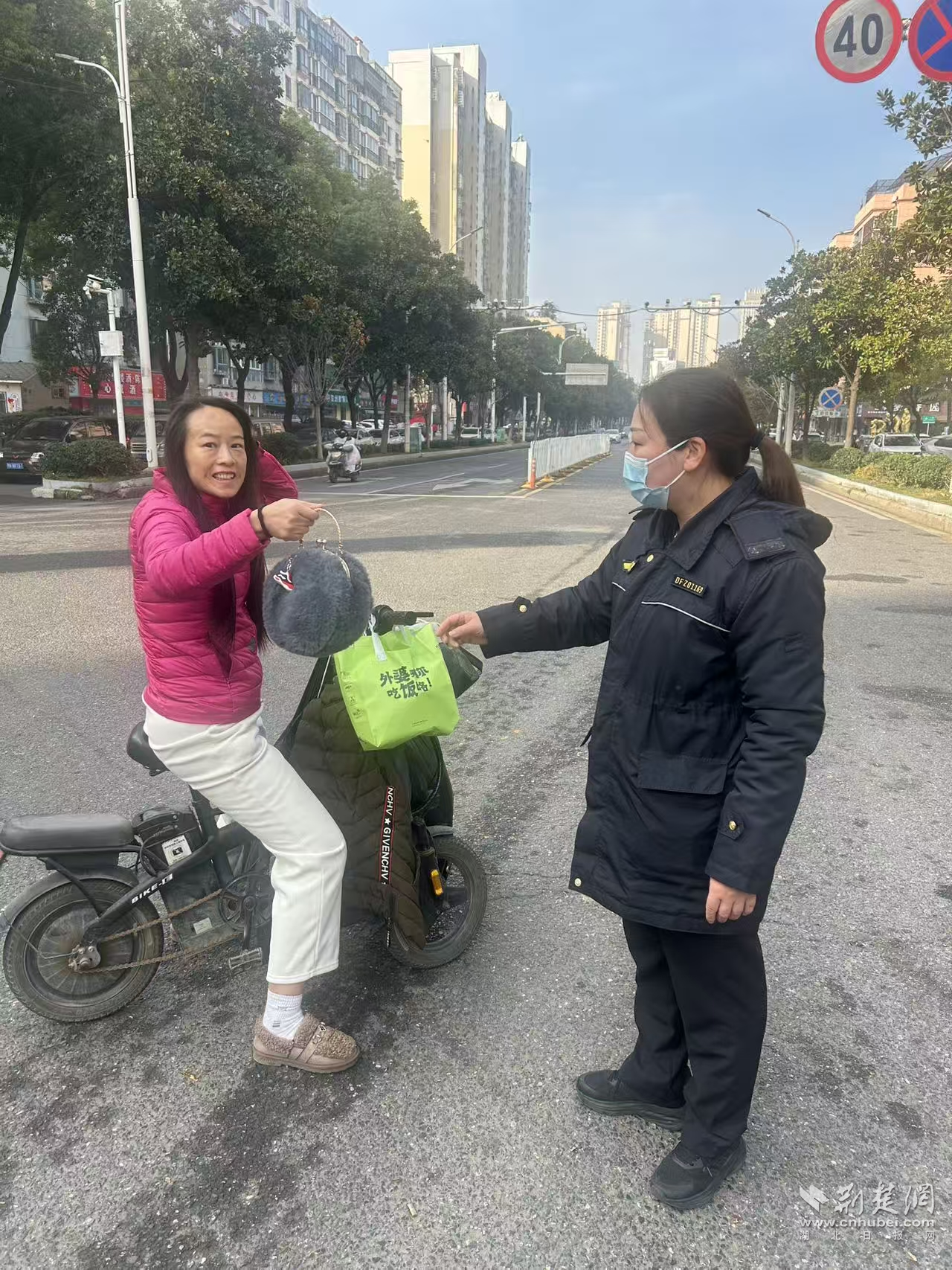 荊楚網(wǎng)(湖北日?qǐng)?bào)網(wǎng))訊(記者 何婧 通訊員 周紅霞 黃慕輝)“太感謝你們了!這手機(jī)要是丟了,我的工作和聯(lián)系可就全耽誤了!”11月24日上午9點(diǎn)多,在東西湖區(qū)一清路與東吳大道交叉路口,一位女士從吳家山街道綜合執(zhí)法中心隊(duì)員張輝手中接過(guò)失而復(fù)得的手提包,激動(dòng)得連聲道謝。