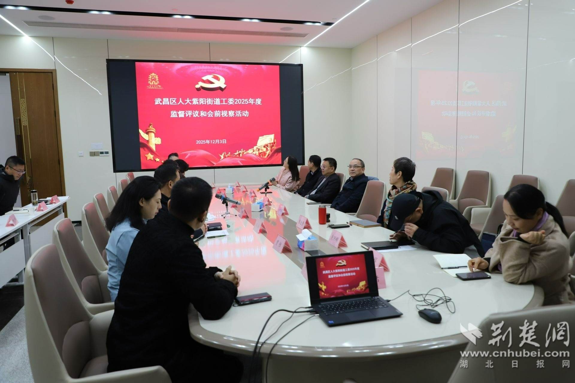 荊楚網(湖北日報網)訊(通訊員 劉洋)12月3日,武昌區(qū)紫陽街道開展“活化歷史文脈·賦能武昌灣高質量建設”專題會前視察活動。武昌區(qū)人大常委會黨組書記、主任胡太榮帶隊,省、市、區(qū)三級人大代表、政協(xié)委員及相關單位負責人參會,以實地視察、專題研討凝聚發(fā)展共識,共繪區(qū)域文旅融合與城市更新藍圖。