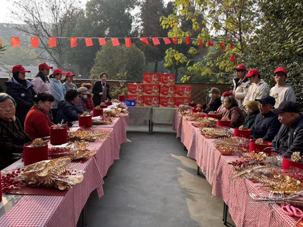 為鍛煉老人動手能力與思維敏捷度,活動設(shè)趣味手工環(huán)節(jié)。老人們在社區(qū)工作人員與武大學(xué)生志愿者指導(dǎo)下,將干花、仿真花細心插進裝飾桶?,F(xiàn)場笑聲不斷,老人們舉著作品展示、合影,既收獲成就感,又拉近鄰里距離,傳遞社區(qū)溫情。