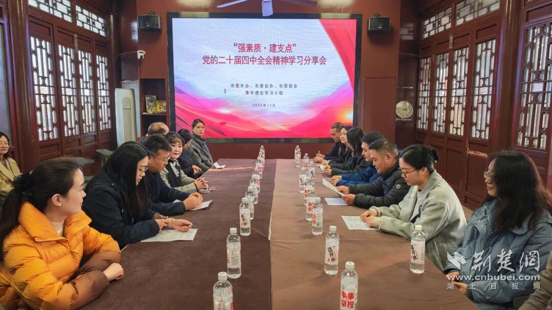 荊楚網(wǎng)(湖北日?qǐng)?bào)網(wǎng))訊(通訊員 史金鐘)冬日的龜山層林浸染,楚風(fēng)漢韻縈繞書香。12月11日下午,來(lái)自武漢市委外辦、市委臺(tái)辦、市貿(mào)促會(huì)的青年理論學(xué)習(xí)小組在龜山楚才韜奮書院聯(lián)合舉辦“強(qiáng)素質(zhì)·建支點(diǎn)”讀書活動(dòng)暨黨的二十屆四中全會(huì)精神學(xué)習(xí)分享會(huì)。30余名青年干部通過(guò)實(shí)地調(diào)研、思想碰撞,深學(xué)細(xì)悟全會(huì)精神,凝聚服務(wù)“五個(gè)中心”建設(shè)的青春合力。