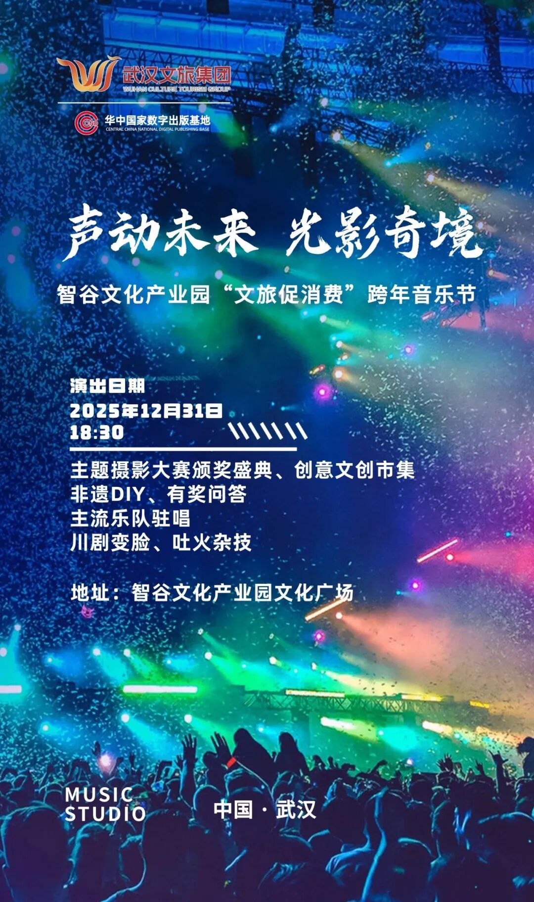 12月31日,“聲動(dòng)未來(lái)·光影奇境”2026“文旅促消費(fèi)”跨年音樂(lè)節(jié)將在智谷文化產(chǎn)業(yè)園舉行。來(lái)智谷跨年,不僅可以逛“文創(chuàng)+年貨市集”,體驗(yàn)非遺手藝、傳統(tǒng)小吃、潮玩好物,還可以伴隨小提琴演奏、搖滾樂(lè)隊(duì)演出、舞蹈、川劇變臉等精彩節(jié)目一起迎接2026年。