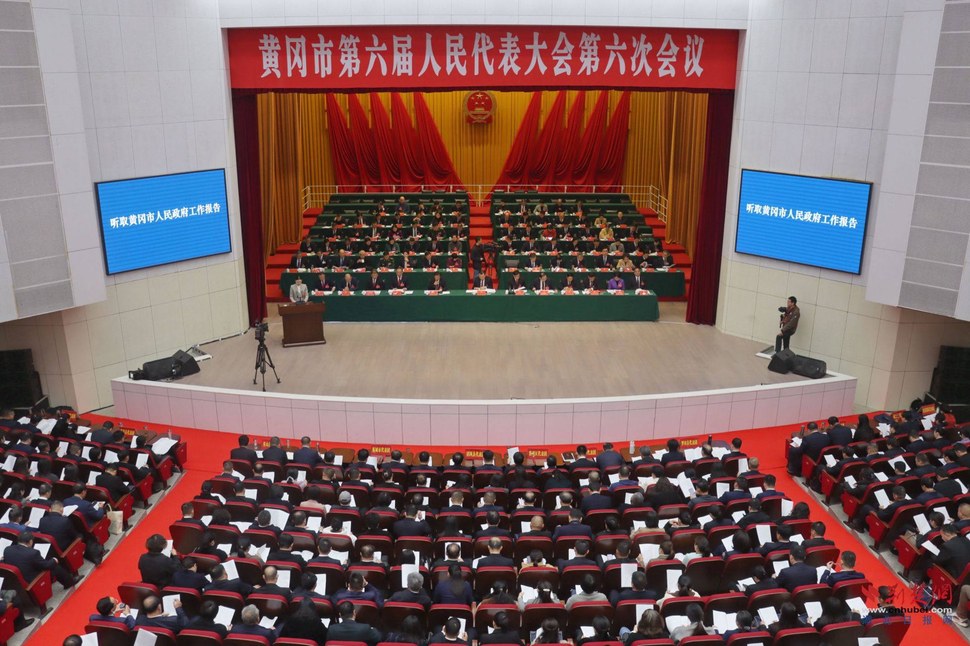 1月13日,黃岡市第六屆人民代表大會第六次會議在黃岡職工活動中心開幕。市長劉潔代表市人民政府向大會報告工作。