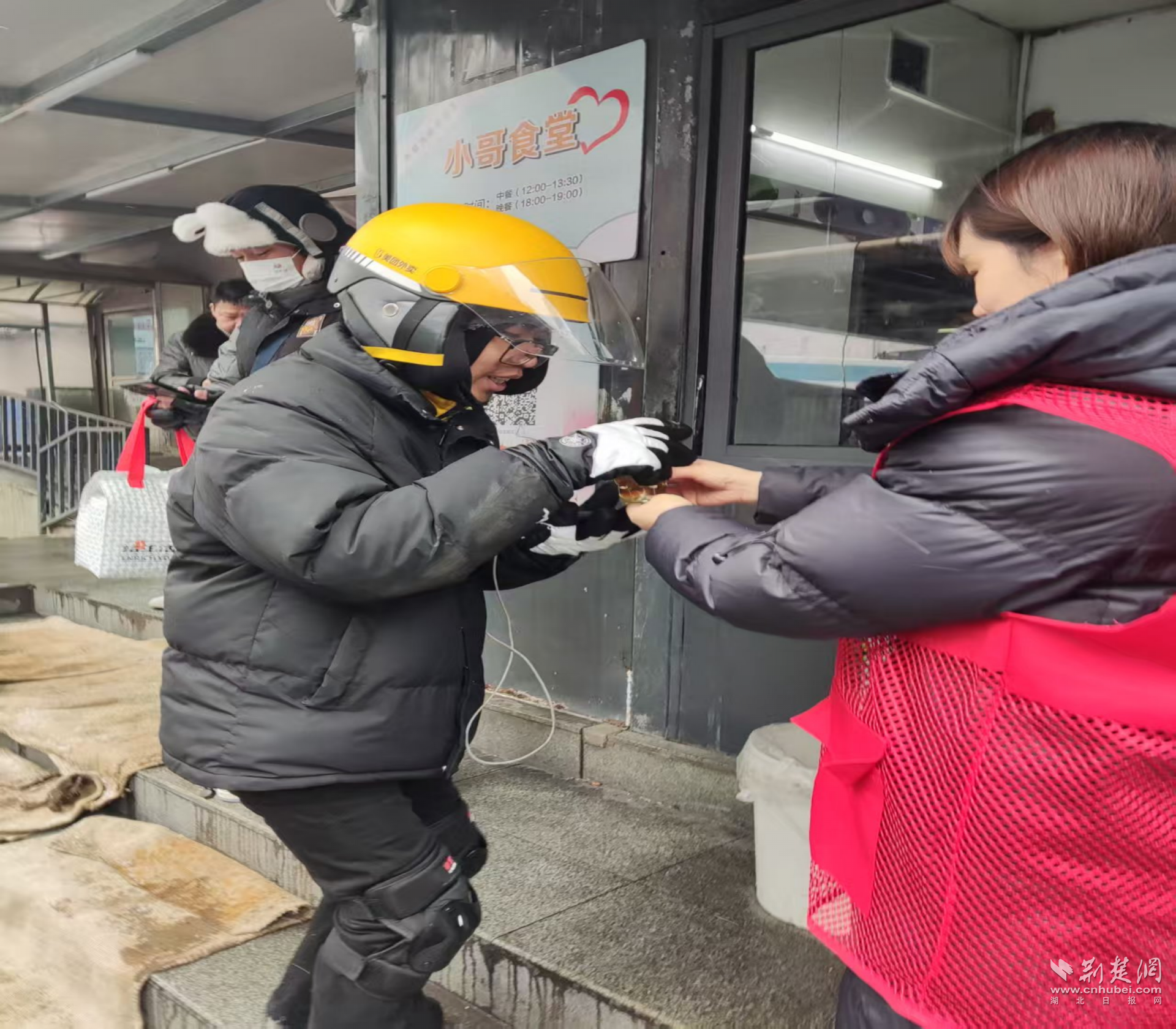 寒潮來(lái)臨前后,江漢區(qū)各街道依托江城驛站、愛心商戶和“小哥食堂”等服務(wù)陣地,迅速將取暖、飲水、熱食等保障送到一線。