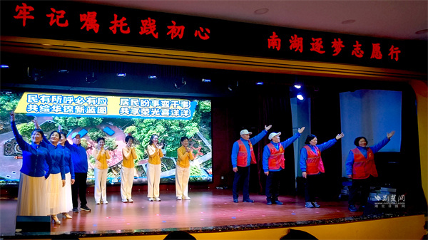 活動(dòng)中,取材于寧松社區(qū)真實(shí)故事的情景劇《南湖暖陽(yáng)》,藝術(shù)再現(xiàn)了鄰里互助的溫情日常;華錦社區(qū)自編自導(dǎo)自演的情景劇《華錦“民”星,微光閃亮》,將社區(qū)“民星”們植綠煥新、熱心服務(wù)的點(diǎn)滴故事搬上舞臺(tái),生動(dòng)詮釋了“微光”的力量;水域天際社區(qū)的詩(shī)朗誦《以志愿之名書(shū)青春華章》,配合著志愿者從舞臺(tái)各處匯聚而來(lái)的精心設(shè)計(jì),寓意著志愿服務(wù)精神在南湖遍地開(kāi)花……這些源自生活、貼近民心的節(jié)目,不僅豐富了風(fēng)采展的形式,更讓感動(dòng)人心的力量在藝術(shù)的共鳴中得以升華和傳遞。