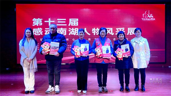 風(fēng)采展上,12位(個(gè))感動(dòng)人物(團(tuán)體)分批上臺(tái)接受紀(jì)念相冊(cè)。他們中,有退休仍發(fā)光發(fā)熱的老黨員,有緊急送藥的外賣小哥,還有義務(wù)辦學(xué)服務(wù)老人的社區(qū)大學(xué)校長(zhǎng)等。他們崗位平凡,卻用善舉傳遞溫暖,初心赤誠,點(diǎn)亮南湖向善之光。