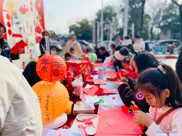 現(xiàn)場節(jié)日氛圍濃厚,文化氣息撲面而來。居民們不僅可以便捷選購年貨,還能免費參與多項文化體驗活動。書法老師帶領(lǐng)孩子們揮毫潑墨,一副副春聯(lián)和福字傳遞祝福;黃鶴書房設(shè)置的投壺游戲區(qū),讓市民在趣味中重溫傳統(tǒng)年俗;非遺手作課堂內(nèi),搖錢樹制作、剪窗花等技藝吸引眾人親手嘗試,近距離感受非遺魅力。市集匯聚30余家品牌商戶,商品涵蓋生鮮食品、休閑零食、健康禮品、文創(chuàng)產(chǎn)品等,充分滿足了居民“一站式”購齊年貨的多元需求,真正實現(xiàn)便民與惠民相統(tǒng)一。