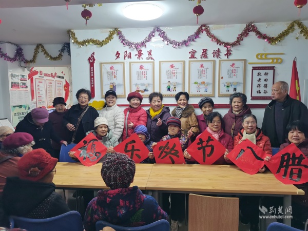 讀書(shū)社區(qū)老人歡慶臘八。 通訊員供圖