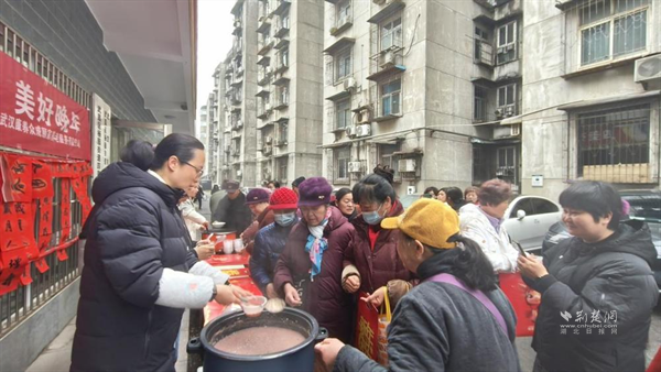 當日清晨,四美、歐景苑、紡器等社區(qū)便熱鬧起來。社區(qū)工作人員攜手武漢眾成頤家養(yǎng)老服務(wù)有限公司工作人員,精心挑選糯米、紅豆、紅棗等食材,熬煮出香甜軟糯的臘八粥,并引導(dǎo)居民排隊有序領(lǐng)取。