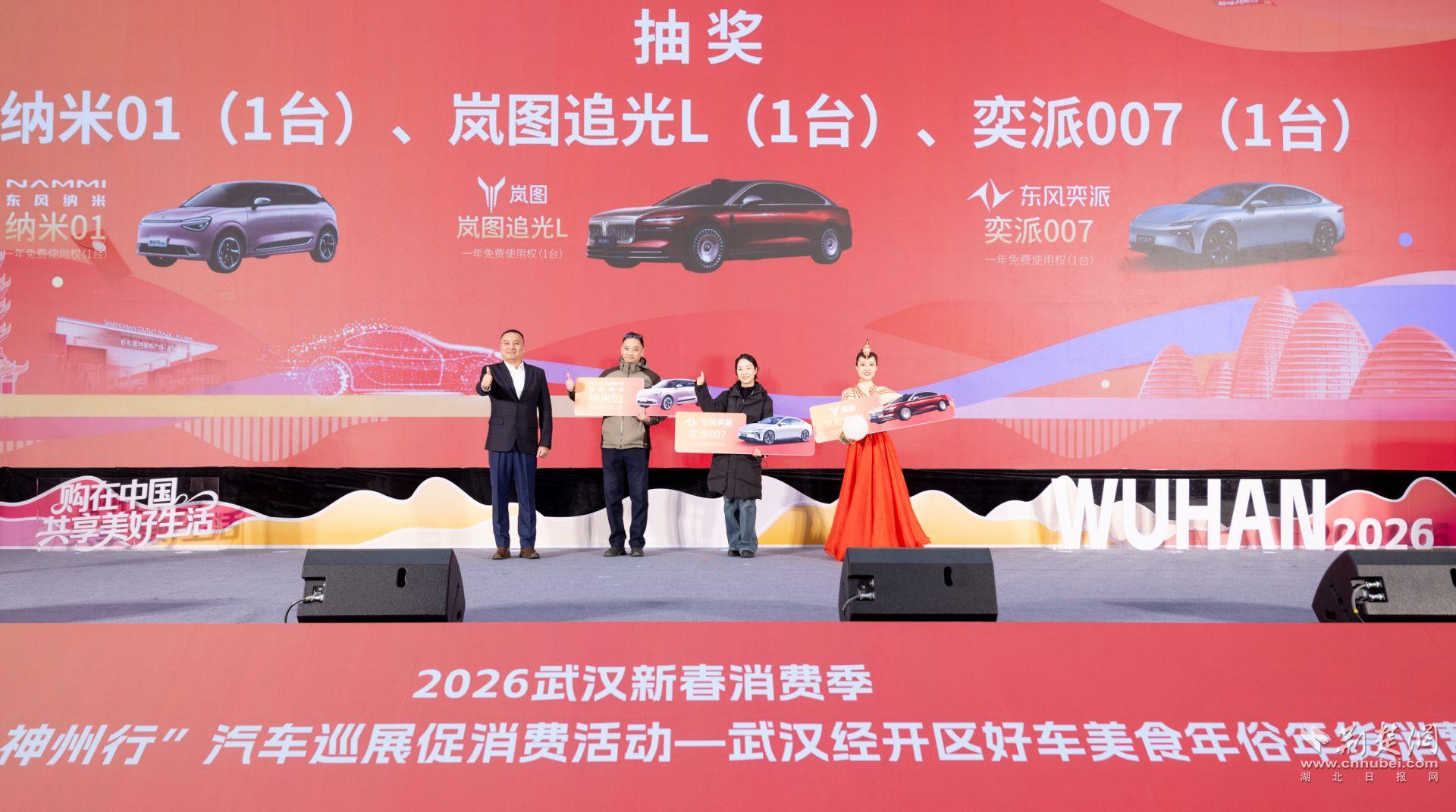 3位幸運市民現(xiàn)場抽走“武漢造”汽車一年免費使用權(quán)。通訊員供圖