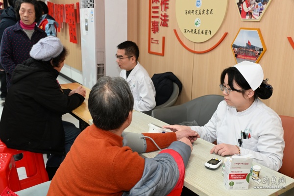 健康義診區(qū)里,武漢市第三醫(yī)院的醫(yī)護團隊耐心為居民測量血壓、血糖,細致解答健康疑問,并給予個性化指導。“在家門口就能享受到這么周到的醫(yī)療服務,心里特別踏實?!本用窭畎⒁踢B連稱贊。