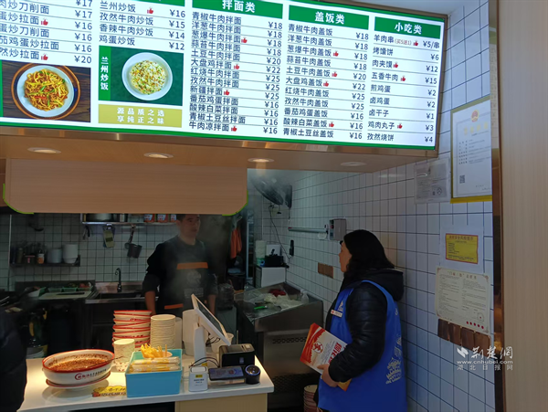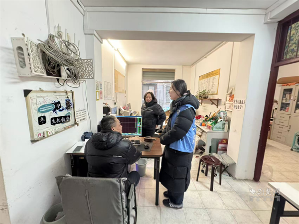 網(wǎng)格員與商戶親切交流,了解經(jīng)營(yíng)情況和春節(jié)安排。通訊員供圖