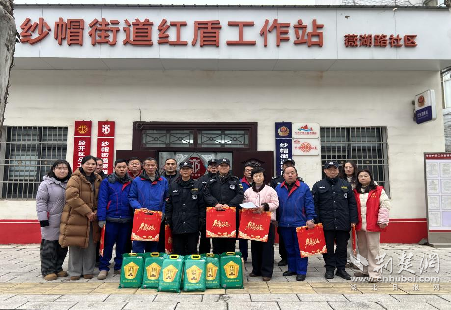 荊楚網(wǎng)(湖北日報(bào)網(wǎng))訊(通訊員吳悠琪)2月10日,武漢經(jīng)開區(qū)紗帽街道薇湖路社區(qū)工會驛站開展春節(jié)慰問、新春送暖活動,為轄區(qū)內(nèi)保安、保潔等新業(yè)態(tài)從業(yè)人員送上大米、春聯(lián)等慰問品,向節(jié)日期間堅(jiān)守崗位的一線工作人員送上新春問候。