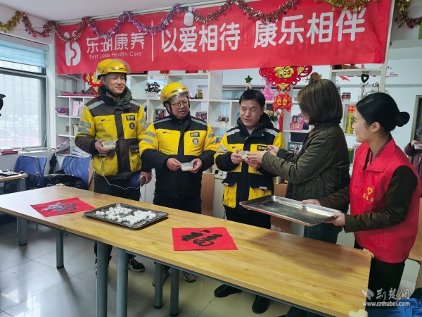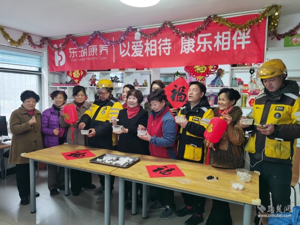活動當(dāng)天,讀書社區(qū)養(yǎng)老服務(wù)中心內(nèi)歡聲笑語、暖意融融。來自不同群體的志愿者們分工協(xié)作、配合默契,社區(qū)退役軍人服務(wù)隊的隊員揉面、拌餡有條不紊;武漢客運(yùn)段的志愿者們手法嫻熟,搓圓捏餡一氣呵成;居民志愿者們則在一旁燒水備碗、忙前忙后。大家圍坐在桌前,一邊包著湯圓,一邊拉著家常,在裊裊升起的熱氣中,心與心貼得更近了。