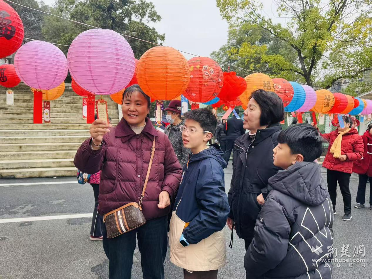 居民們在燈謎區(qū)駐足思索。通訊員供圖