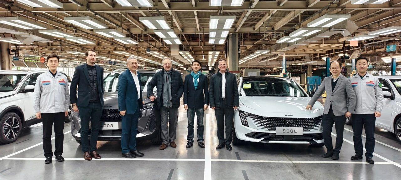 斯泰蘭蒂斯集團(tuán)副董事長(zhǎng)羅伯特?標(biāo)致(左四)一行在神龍汽車(chē)調(diào)研。通訊員供圖