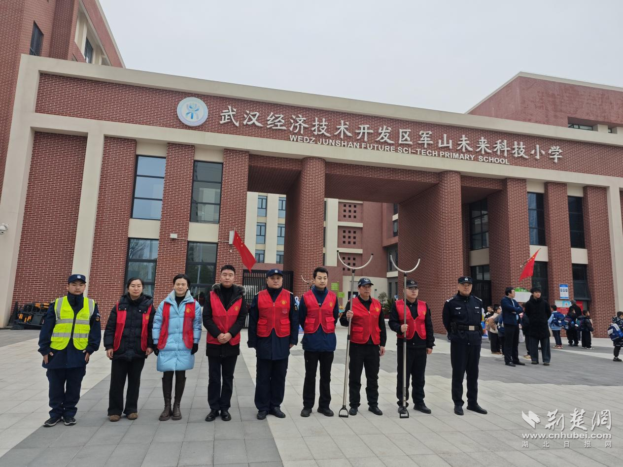 荊楚網(wǎng)(湖北日報網(wǎng))訊(通訊員 吳曉琪、楊慕曦、曹悅、黃盈)春風送暖,開學啟航。3月4日,2026年春季新學期開學第一天,武漢經(jīng)開區(qū)軍山新城蒲潭社區(qū)、龍湖社區(qū)、小軍山社區(qū)、川江池社區(qū)同步啟動春季開學護學專項行動,聯(lián)動社區(qū)志愿者、民警、物業(yè)等多方力量,在學校周邊引導接送車輛即停即走,護送學生安全通過馬路,及時排查消除各類安全隱患,用實際行動為孩子們筑起了一道安全的“防護墻”,為廣大師生營造了安全、有序、暢通的入學環(huán)境。