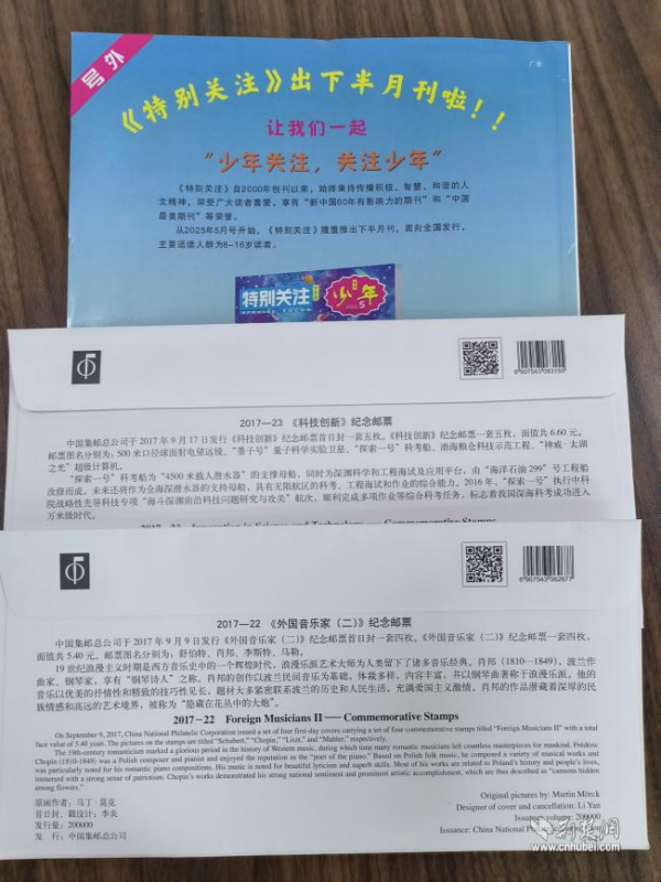 活動(dòng)伊始,武昌區(qū)郵政分公司精心準(zhǔn)備了一份份“精神食糧”,將科技創(chuàng)新、音樂家等不同主題的首日封以及《特別關(guān)注》雜志贈(zèng)送給參與活動(dòng)的小朋友們。首日封上精美的郵票圖案記錄著時(shí)代的印記,雜志中蘊(yùn)含的人生智慧啟迪著幼小的心靈。