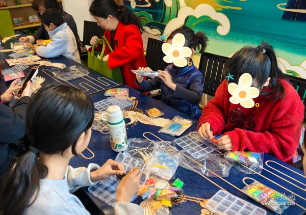 在手工制作環(huán)節(jié),愛心媽媽們與孩子們圍坐在一起,共同創(chuàng)作拼豆手工作品。一顆顆五顏六色的小小塑料豆,在孩子們專注的目光中、在稚嫩小手的擺弄下,逐漸變成可愛精美的圖案。
