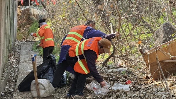 工作人員與志愿者穿梭于陡坡之上、溝壑之間,手持夾鉗、垃圾袋,逐點(diǎn)摸排、逐處清理,不放過任何一個(gè)隱蔽角落。從坡頂?shù)狡碌祝瑥氖p到樹叢,枯枝落葉、白色垃圾、廢棄雜物被一一清理出來,讓坡地逐漸顯露出原本的清爽模樣。對(duì)于清理出的各類垃圾,現(xiàn)場(chǎng)實(shí)行分類收集、閉環(huán)清運(yùn),確保整治見底見效,堅(jiān)決杜絕二次污染。