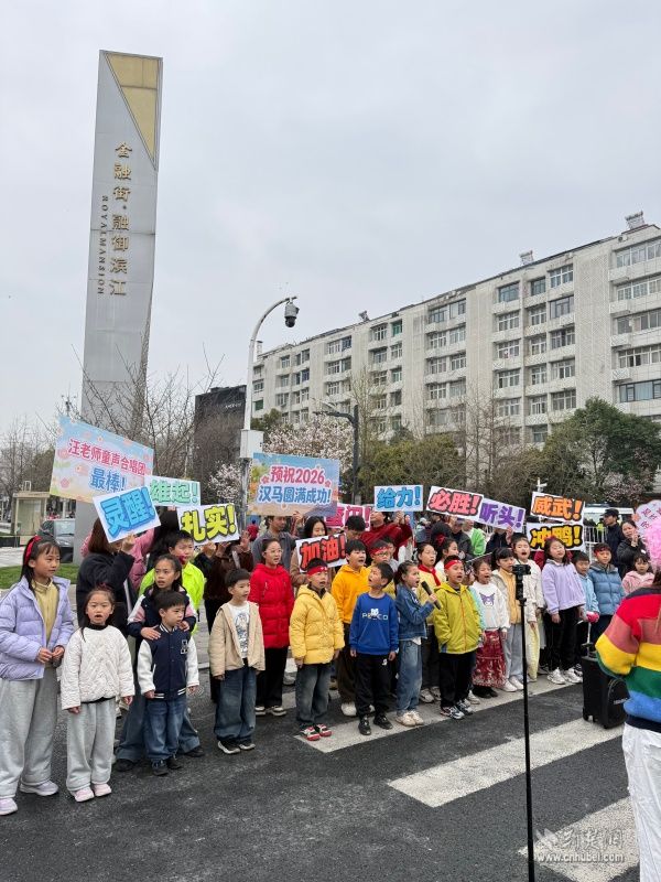 賽道之外,“民間音樂加油站”同樣精彩紛呈。武漢音樂學(xué)院中樂系學(xué)子擊鼓而鳴,音樂商戶武漢眾樂樂器員工用躍動(dòng)的音符引爆現(xiàn)場(chǎng)氛圍。彭劉楊路社區(qū)共建單位彭劉楊郵政支局員工熱情助陣,大成社區(qū)汪老師童聲合唱團(tuán)的清脆童聲、武昌未來實(shí)驗(yàn)小學(xué)(黃鶴樓校區(qū))小朋友們的亮麗裝扮,為賽道增添了一抹靈動(dòng)的色彩。讀書社區(qū)聯(lián)合湖北中醫(yī)藥大學(xué)第一臨床學(xué)院青年黨員為漢馬選手加油鼓勁,社區(qū)居民身著紅衣,敲響鑼鼓,用最質(zhì)樸的方式傳遞最真摯的熱情。