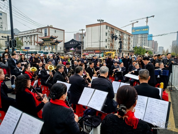 黃鶴樓街社區(qū)教育學(xué)院西廠口社區(qū)教學(xué)點(diǎn)管樂團(tuán)用音樂助力漢馬。 通訊員供圖