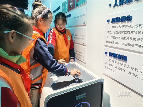 互動體驗(yàn)環(huán)節(jié),孩子們在志愿者的帶領(lǐng)下有序參觀家庭電路模型、電力沙盤。大家輪番參與觸電、高空墜落等模擬體驗(yàn),挑戰(zhàn)心肺復(fù)蘇、滅火器滅火等應(yīng)急實(shí)操,在趣味互動中深化對安全知識的理解。