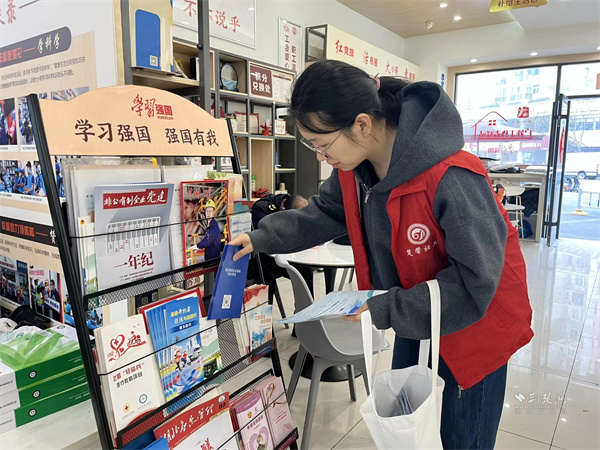 工作人員指導(dǎo)申領(lǐng)武漢電子社???。 通訊員供圖