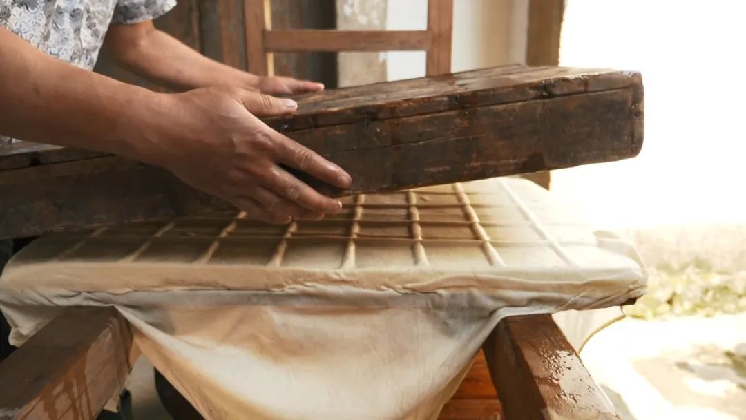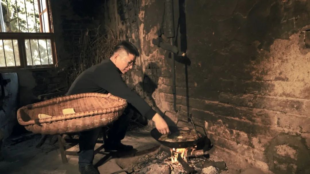 過濾后的生豆?jié){在廚房里燒煮直到沸騰。燒開的豆?jié){裝缸后再被抬到堂屋,加入熟石膏,靜置一段時(shí)間就能生成豆腐腦。最后就是上架壓制豆腐干子了,這些其實(shí)都就是傳統(tǒng)豆腐的做法。