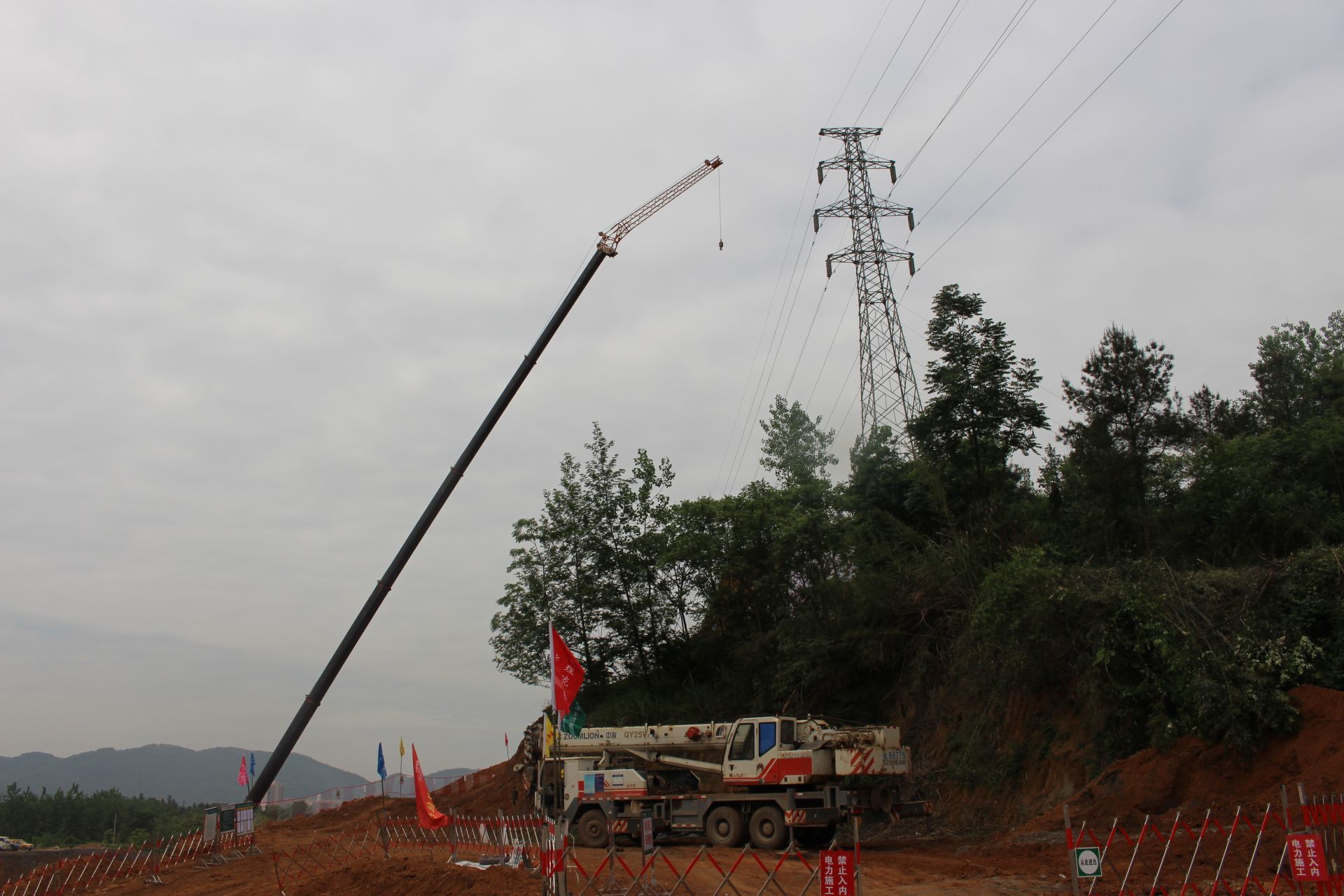 5月8日早上6點(diǎn),搶修人員現(xiàn)場(chǎng)通過(guò)吊車(chē)將桿塔錨固,對(duì)塔上導(dǎo)線(xiàn)進(jìn)行拆除等系列措施進(jìn)行搶修??此坪?jiǎn)單的工作,在30米的高空操作費(fèi)時(shí)費(fèi)力,雖然天氣微涼,但是電力搶修人員的汗水早已浸透衣衫。