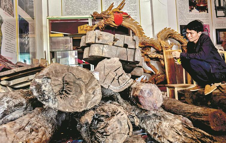 圖為:工作室內(nèi),堆滿了收集來(lái)的陰沉木
