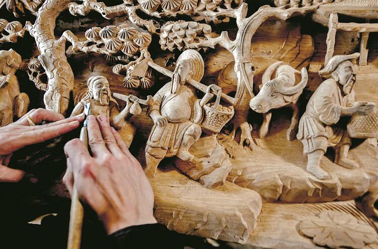 2014年,通山木雕成為了國(guó)家非物質(zhì)文化遺產(chǎn)代表性項(xiàng)目,成希被評(píng)為木雕文化第五代傳承人?!巴ㄉ降哪镜袼囆g(shù)有‘木板上的刺繡’之稱?!背上Uf(shuō),通山木雕題材十分廣泛,每一個(gè)人物、場(chǎng)景都有一個(gè)故事。他經(jīng)常獨(dú)自到山里古民居里參觀學(xué)習(xí)領(lǐng)悟,“要讓每雕刻的一刀都會(huì)唱歌!”“精雕細(xì)琢,出神入化!”非物質(zhì)文化遺產(chǎn)保護(hù)中心主任謝志兵介紹,2017年,成希在成都第六屆國(guó)際非遺節(jié)上獲得“新生代手藝之星”稱號(hào)。去年,他獲得了第二屆“荊楚工匠”稱號(hào)。