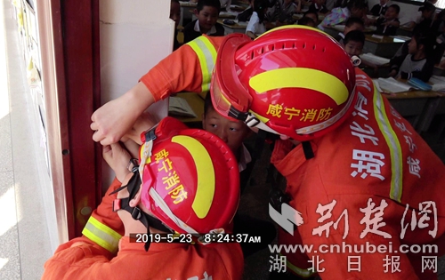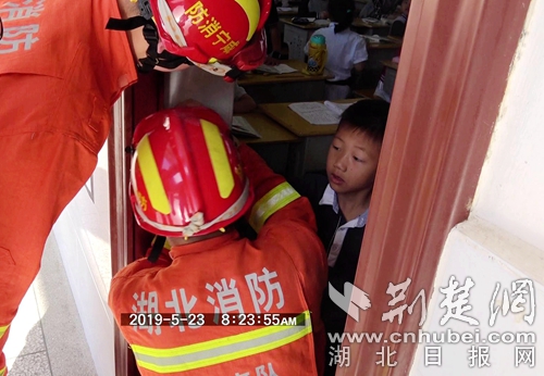 荊楚網客戶端-荊楚網消息(通訊員 朱燕林)5月23日,咸寧市泉塘小學有學生手卡門栓,接警后,溫泉消防大隊三號橋執(zhí)勤站迅速出動1輛消防車、6名消防員趕赴現場處置。