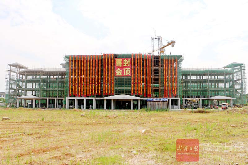 6月10日,通山縣中醫(yī)醫(yī)院吳田新院區(qū)門診樓、醫(yī)技樓建設(shè)項目主體工程順利封頂。