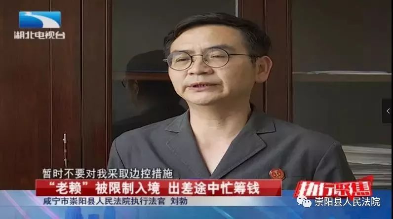 崇陽(yáng)縣法院執(zhí)行法官劉勃:“法院現(xiàn)在對(duì)失信被執(zhí)行人有個(gè)措施,就是限制出入境,我就跟他講,我說(shuō)你回不來(lái)了?!?/p>