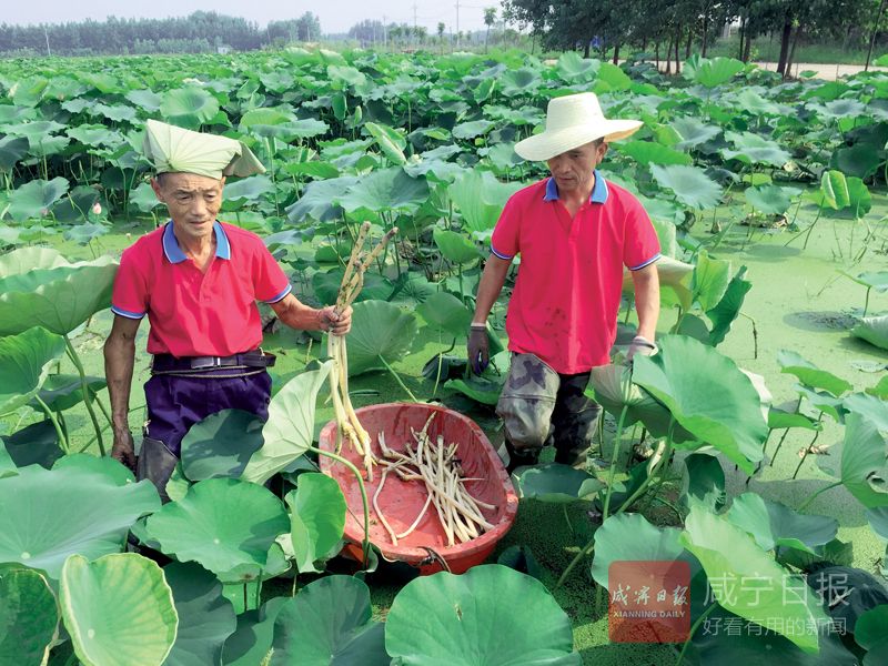 近日,在陸溪鎮(zhèn)工業(yè)園門(mén)口,村民們正在荷塘里采收藕帶。