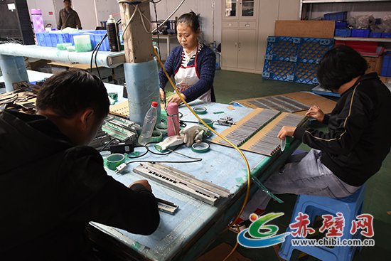 (記者 聶愛(ài)陽(yáng))10月27日,赤壁高新區(qū)藍(lán)炬興業(yè)(赤壁)科技有限公司車(chē)間內(nèi),工人們正忙著往機(jī)盒上粘警示隔離膠。