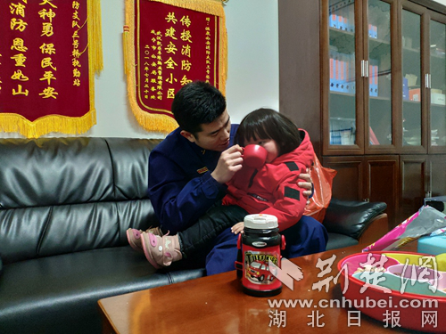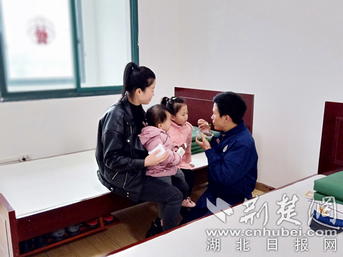 消防員堅守崗位家人來隊陪值班。(通訊員 柳丹 攝)
