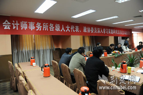 11月14日下午,省注冊(cè)會(huì)計(jì)師行業(yè)黨委在武昌財(cái)苑大廈召開(kāi)了全省注冊(cè)會(huì)計(jì)師行業(yè)各級(jí)人大代表、政協(xié)委員深入學(xué)習(xí)實(shí)踐科學(xué)發(fā)展觀活動(dòng)座談會(huì)。來(lái)自全省各地的16位各級(jí)人大代表、政協(xié)委員齊聚一堂,為深入學(xué)習(xí)實(shí)踐科學(xué)發(fā)展觀活動(dòng)建言獻(xiàn)策,回顧二十年來(lái)注冊(cè)會(huì)計(jì)師行業(yè)黨建工作的發(fā)展歷程,展望會(huì)計(jì)師事務(wù)所行業(yè)的美好未來(lái)。
