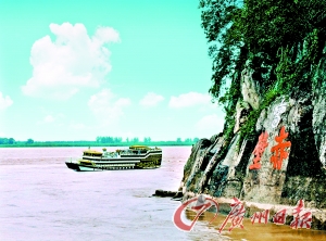 在赤壁縣城西邊的赤壁古戰(zhàn)場(chǎng),如今依然江水滔滔。當(dāng)年“赤壁之戰(zhàn)”,經(jīng)此一役,定下三分天下格局。李白詩(shī)曰:“二龍爭(zhēng)戰(zhàn)決雌雄,赤壁樓船掃地空。烈火張?zhí)煺赵坪#荑び诖似撇芄!毕﹃?yáng)西下,紅色的陽(yáng)光灑在江面上,怎不讓人想起那烽火連天的三國(guó)?