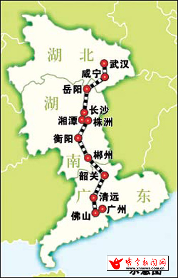 武廣高速鐵路示意圖