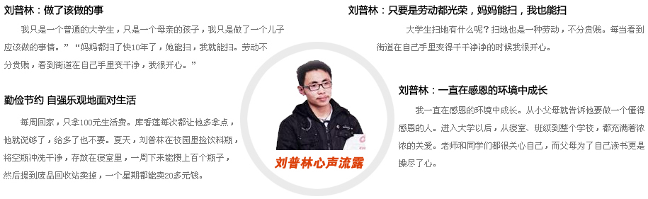 劉普林的可貴不僅在于為母分憂,而是一起掃街的身影讓人動(dòng)容,母慈子孝承載著無(wú)數(shù)中國(guó)人企盼家庭和樂(lè)的人生理想。